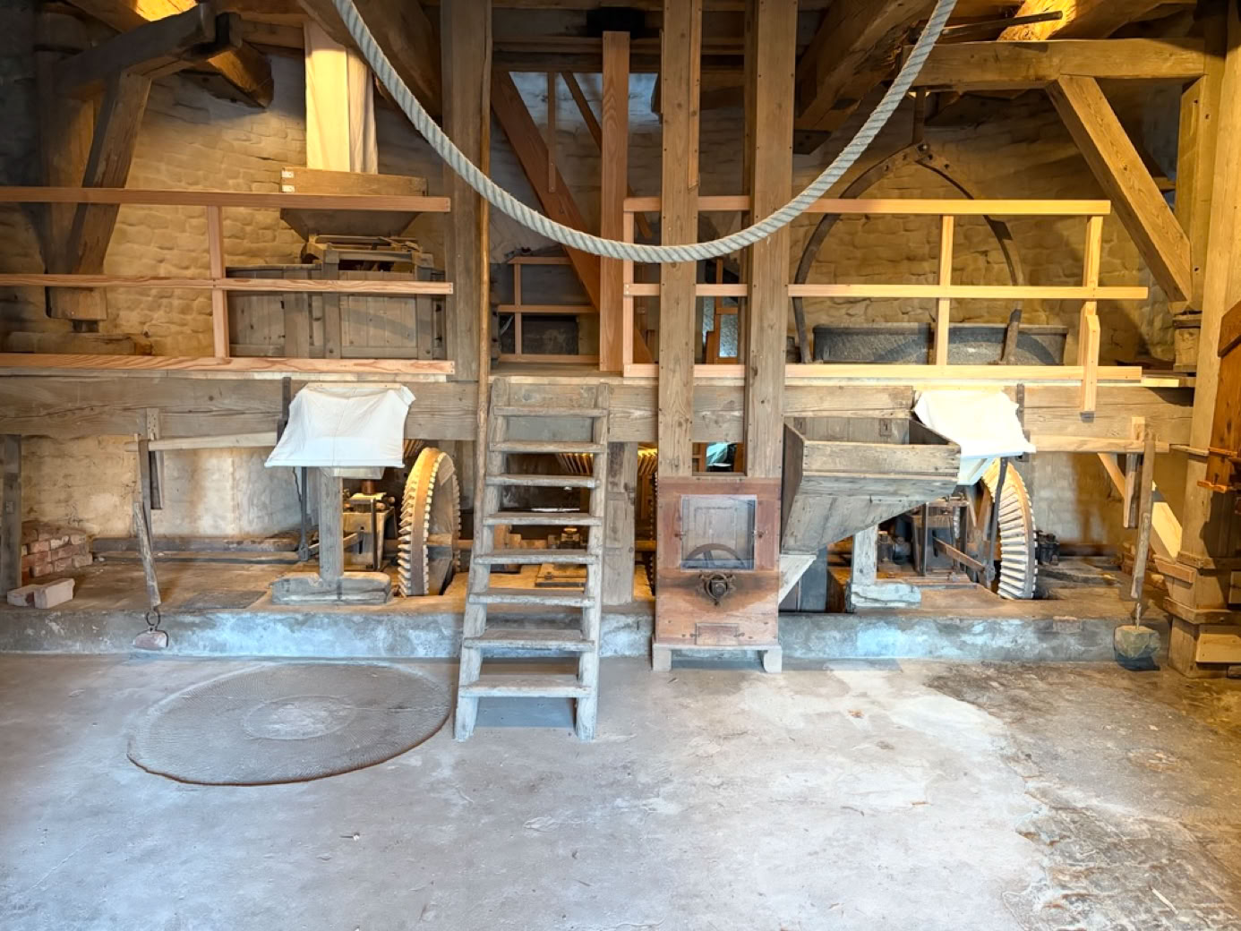 Die Restaurierung der Mühle ist abgeschlossen. Das Ingenieurbüro Rohlfing (Fachleute für Denkmalpflege, Holz- und Mühlenbau) hat die Arbeiten erfolgreich beendet. Angetrieben werden alle beweglichen Teile - wie zuletzt im Jahre der Schließung 1952, von einem Elektromotor.